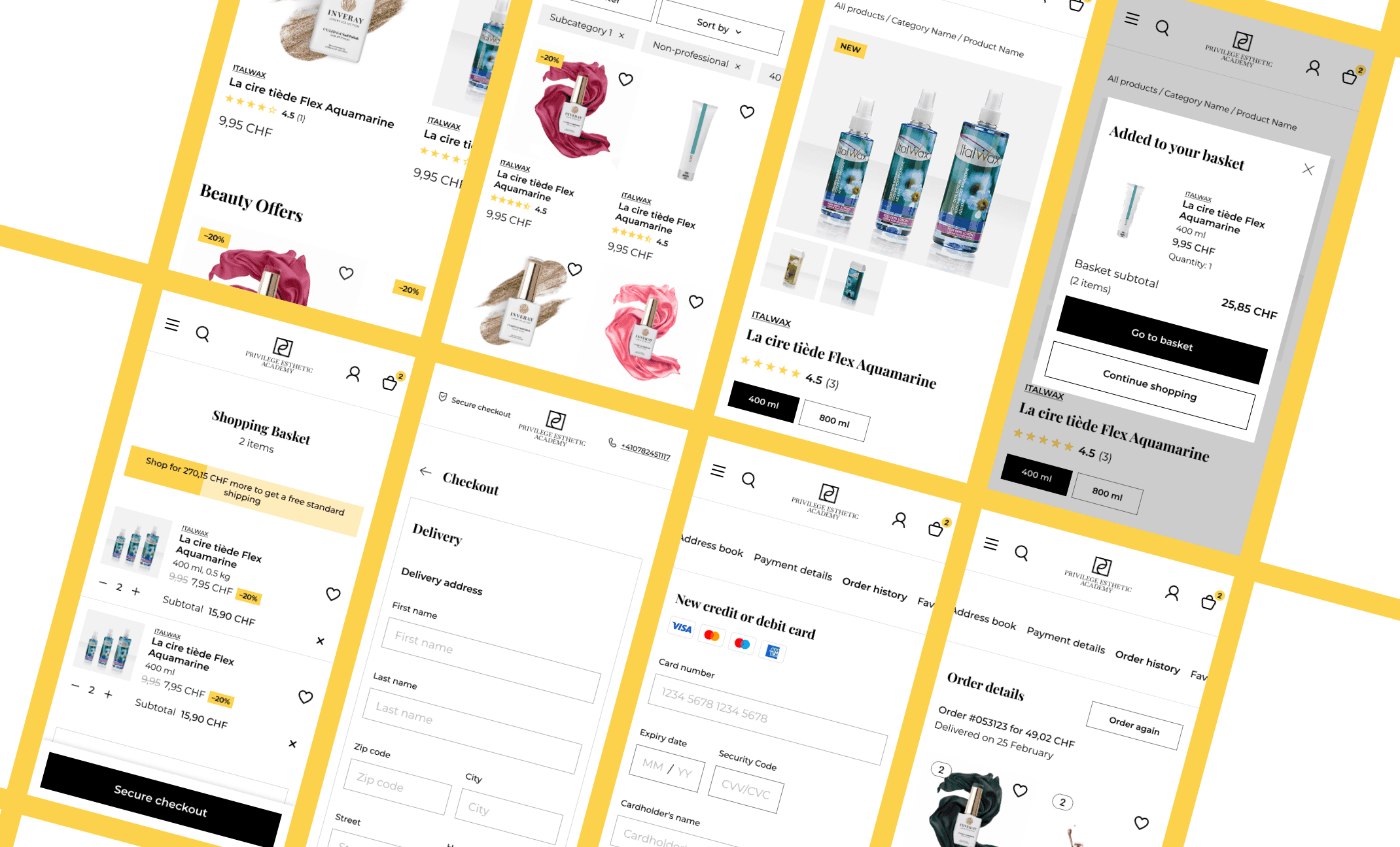 I led the UX/UI design of a custom multi-language e-commerce platform with tiered access: retail shoppers and certified professionals see different products and pricing based on credentials. I delivered the full interface in Figma and supported the front- and back-end developers through handoff documentation and walkthrough calls.